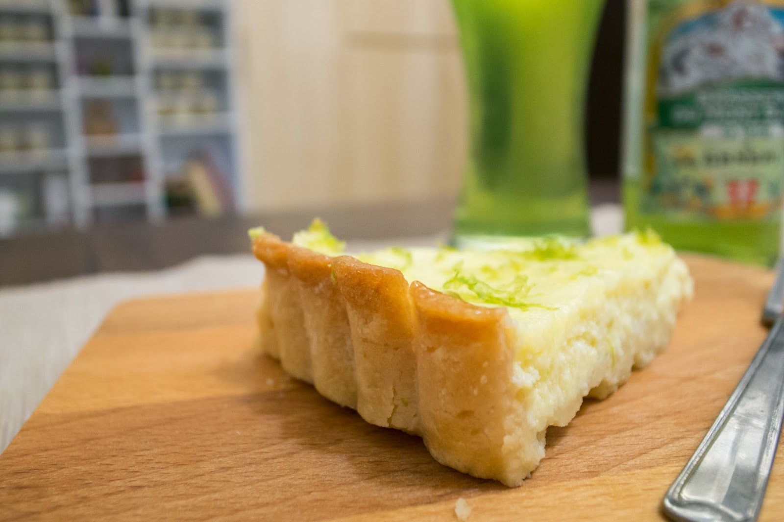 今天會來出這支也是因為這特殊的綠色酒液,讓人很直接的聯想到了檸檬,其實我也不知道這支酒搭配檸檬派會迸出什麼樣的火花?抱著實驗精神,從冰箱拿出了Evon的檸檬派,大膽的姑且一試。