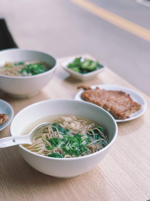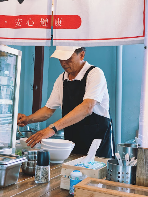 享受著下午和煦的陽光,在安靜的住宅區裡,攤子前只有一群貪吃之徒,一起窸窣吃著令人口齒留香的湯麵,以及讓人意猶未盡的現煎豬排。