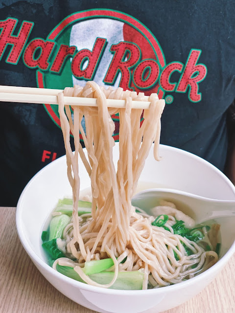 老闆說只單用些許玫瑰鹽抓醃,再裹上薄薄的太白粉料理而已,口感卻相當滑嫩,搭起老母雞湯頭又別有一番滋味。