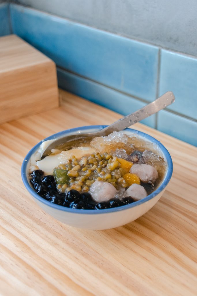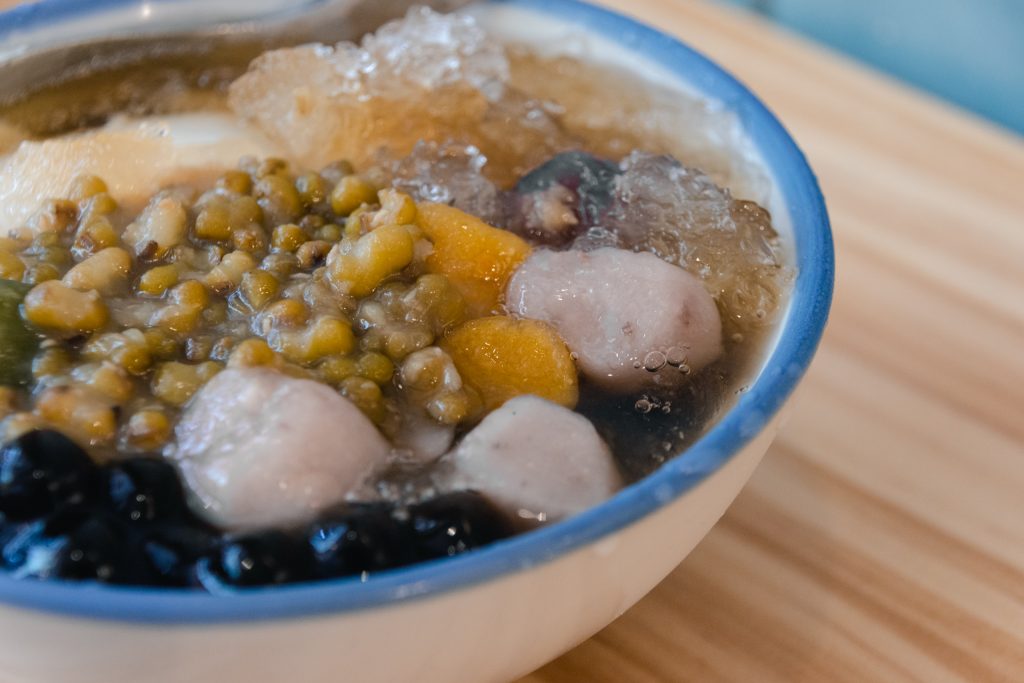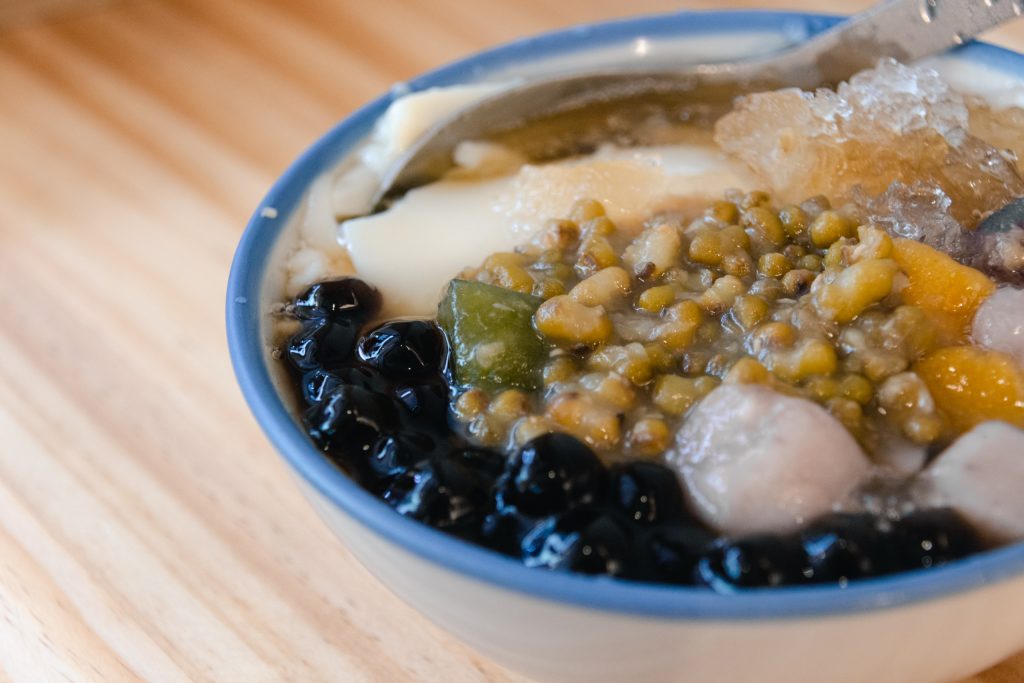 點了一碗豆花,除了一定要點的芋圓外,另外兩種配料則是選粉圓以及綠豆。