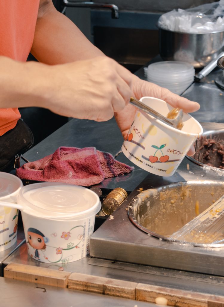 好久沒來了,老闆依舊講究衛生,戴上防止飛沫的塑膠口罩,一邊俐落的舀配料。