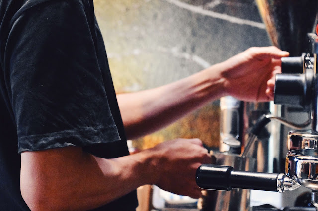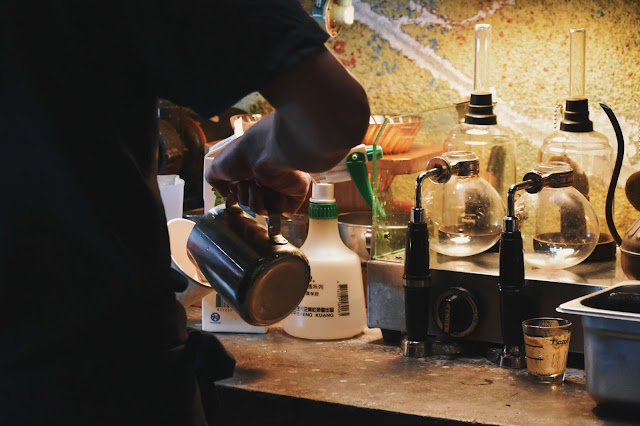 店裡充滿了咖啡與書香氣息,咖啡機不停的在運轉,店員安靜的在煮咖啡,前台擺放了手作的甜點,而且價格親切,每一樣看起來都很可口。