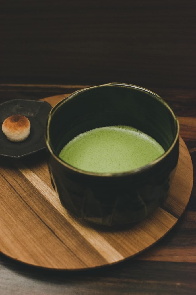 抹茶呈現美麗沈穩的色澤,我捧起抹茶杯,將鼻子湊在杯緣細聞,那婉約的茶香淡淡飄散,安撫了因天熱而有些煩躁的我。