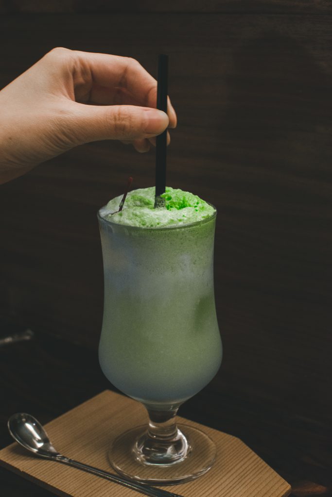 那鮮豔的寶石綠,讓我原先以為喝來會膩口,沒想到店主將甜度掌握的剛好,可趁冰淇淋尚未融化前,先品飲僅有單純哈密瓜果香和氣泡感十足的蘇打組合,待融化後,奶香油脂融入其中,彷彿在品嚐一道甜點,可用附上的長湯匙撈起冰淇淋食用。