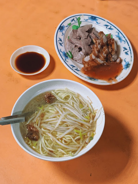 切仔湯麵充滿古早風味,採用油麵麵條,豬骨熬製的湯頭,添加了油蔥酥,再隨意撒上些許豆芽菜,簡單樸實,清淡中能嚐到豬油清香,卻不與小菜搶味。