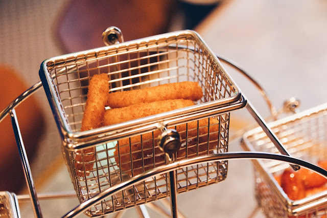 薯條、洋蔥圈、魚手指及脆皮腸各自擁有安身立命的小包廂,穩穩的乘坐在裡頭,吃得無聊了,想換換眼前的口味,用手隨意轉一轉摩天輪,瞬間輪到一下位,每個人像個孩子樂此不疲的把玩,倒是成了意料之外的樂趣。