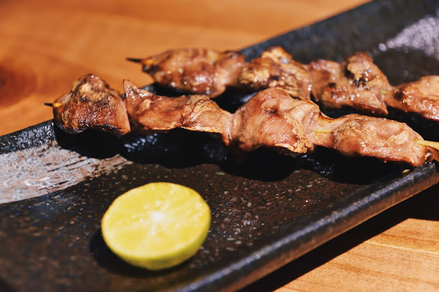店家表示雞系列的串燒是為招牌,於是點了雞腿肉、雞里肌以及其他內臟部位來嚐嚐,蔦燒的串燒調味以鹽味、醬燒、味噌、蔥花、明太子等為變化,可照個人喜好選擇。
