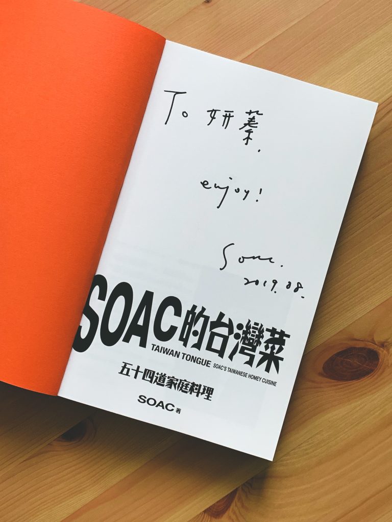 當天他的師弟Ayo也在現場,他在台上說:「相信Soac的這本書會是台灣菜的一個里程碑。」