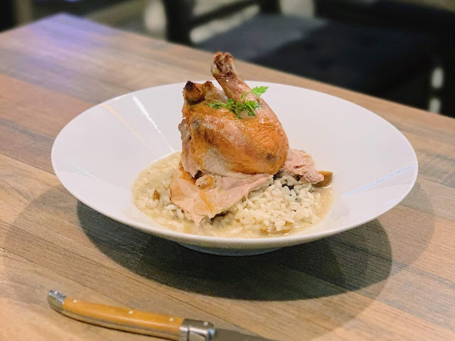 精華的甜美雞汁則流浸於米飯裡,烹調上又得小心的維持義大利燉飯該有的米芯口感,著實不易。