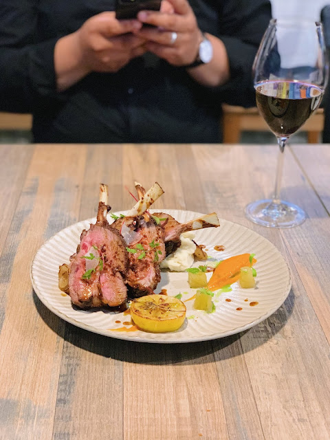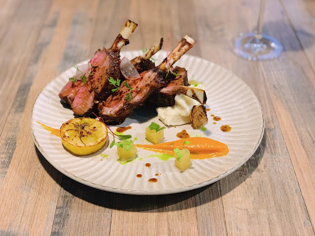 羊排表面烤至焦脆,內裡的肉呈現淡淡的粉色,口感介於稍有嚼勁與柔軟之間,咀嚼時所散發的特殊肉質風味十分迷人。