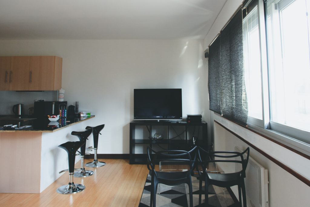 公寓位置在Saint Lazare Train Station附近,步行距離約三分鐘,交通機能算是很方便,而且公寓除了空間超大之外,還有我夢想的L型廚房吧台,附上簡易的鍋具、碗盤及調味料,冰箱裡也準備了汽水飲品,供房客自由飲用,最棒的是還有電動窗簾,遮光度百分百,讓我這個睡覺習慣全黑的人無疑是個貼心的設備。
