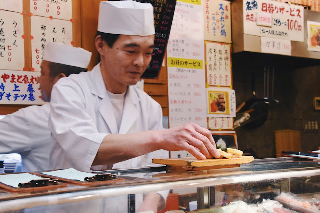 店裡頭全是在地的熟客,飛快地用日語嘰哩咕嚕的與師傅們聊天,我雖然聽不懂內容,但也被這愉快的氣氛給感染了。
