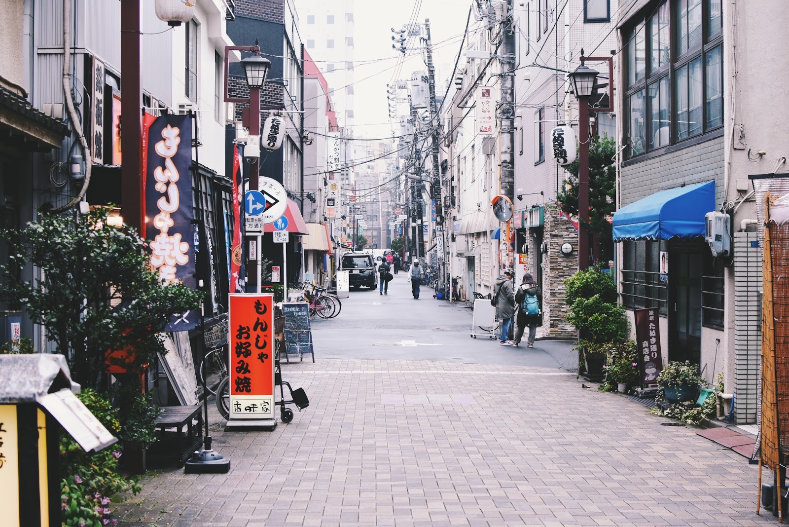 我在最前頭與雷門拍完照,穿過擁擠的商店街,進去淺草寺參拜,參觀完後大約是午餐時間, 打開地圖,看了出發前做的功課,決定選擇避開人潮,往小街巷弄走去。