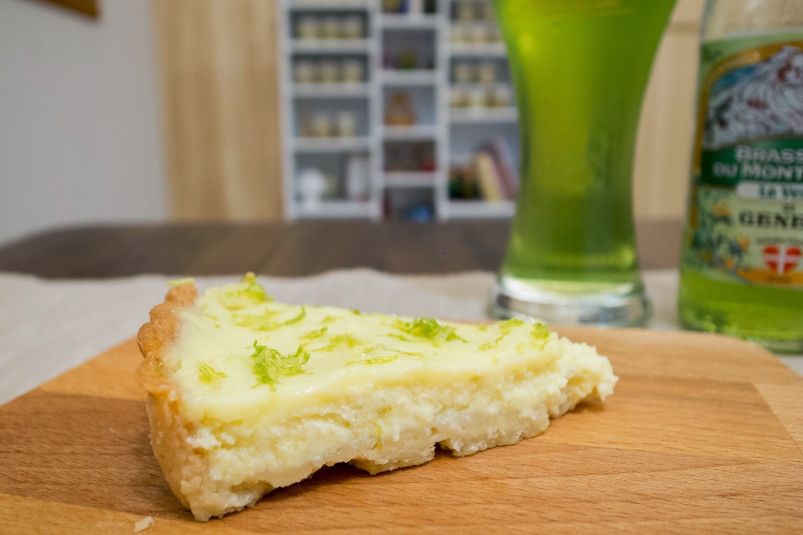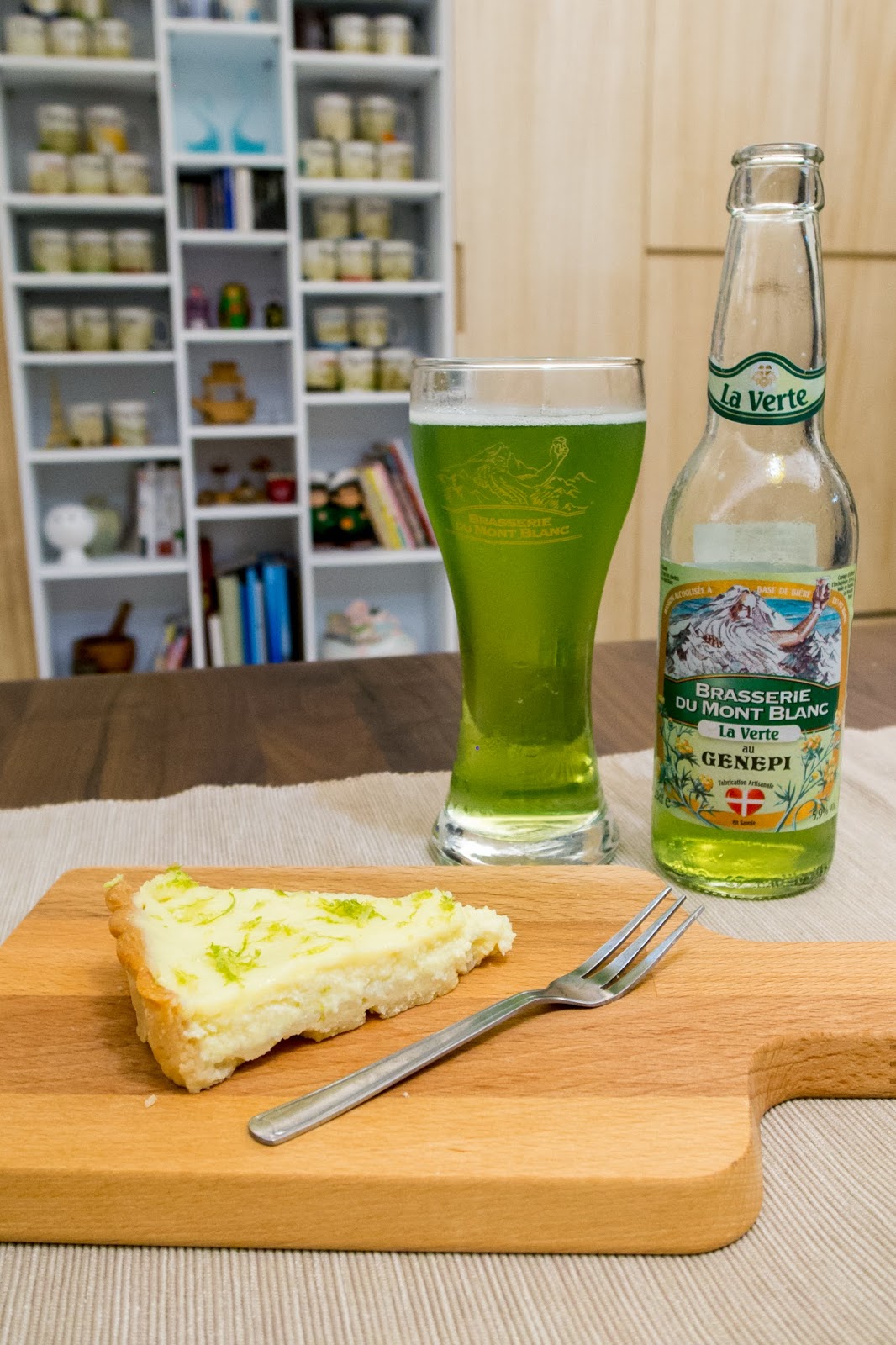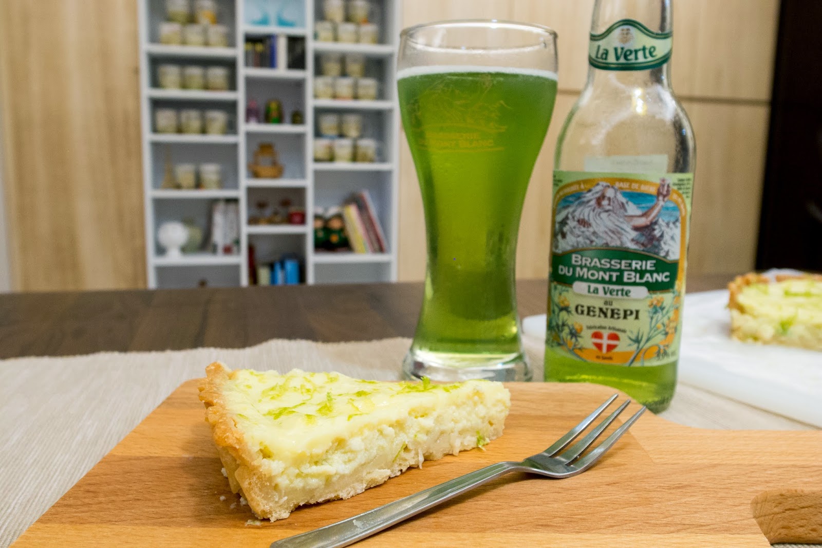今天會來出這支也是因為這特殊的綠色酒液,讓人很直接的聯想到了檸檬,其實我也不知道這支酒搭配檸檬派會迸出什麼樣的火花?抱著實驗精神,從冰箱拿出了Evon的檸檬派,大膽的姑且一試。