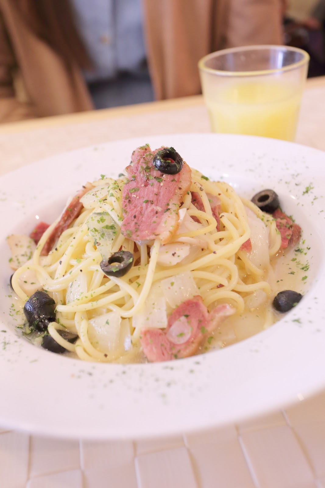 我們總共點了兩種義大利麵,還有另一個就是鮭魚酸豆義大利麵。 裡面的燻鮭魚的份量給得頗多,搭配酸豆,把燻鮭魚的腥味輕輕的抹掉了一些,讓整體味道平衡了些,使燻鮭魚的表現不會太過強眼,不過要是麵條再硬一點點會更好吃!