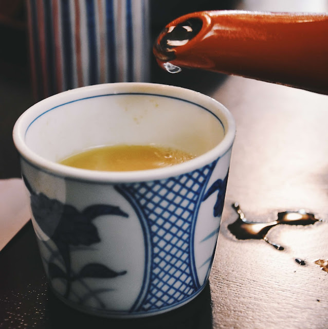 享用完蕎麥麵後,店員拿了一壺熱呼呼的蕎麥原湯示意讓我們倒入碗中喝下,如同吃餃子要喝餃子湯一樣的概念,原湯化原食,腸胃不好、容易脹氣的人,在吃完蕎麥麵更要喝上一碗蕎麥湯,幫助消化。