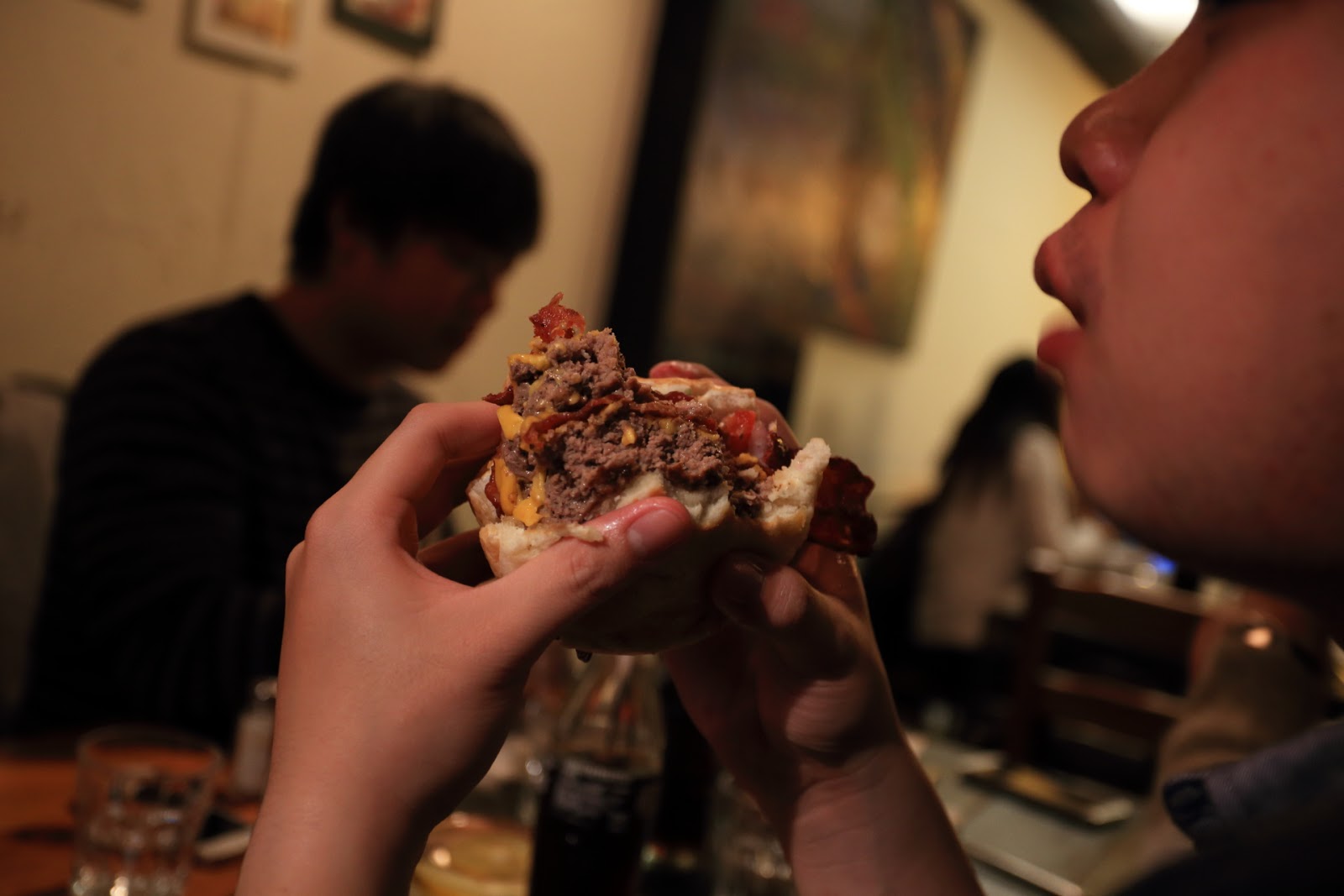 因為鐵定吃得滿手都是,放心的拿起來大快朵頤吧!當你大口咬下去,醬料也會隨即沾黏在你臉上,這是吃漢堡必須得到的代價,漢堡之所以是全世界最受歡迎的食物之一,大概是這種弄得滿手滿臉都是食物的料理,讓你在享受的過程中,舌頭上的味覺、手的觸覺都能同時得到感官上的滿足。