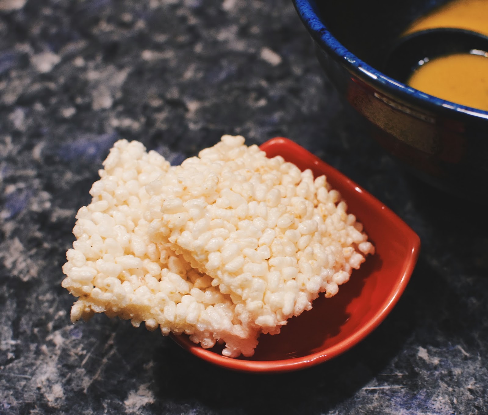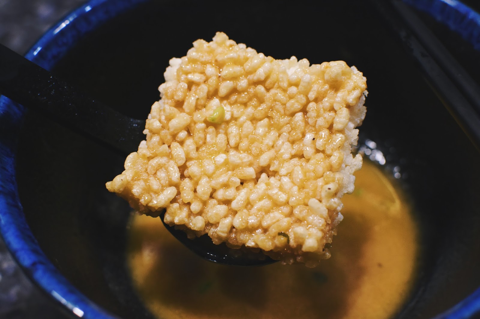 於是我點了一份來試試,現炸好的鍋巴,類似傳統台灣在吃的爆米香,香噴噴的放入湯汁中發出悅耳的聲響,「嘶~」的一聲,瞧它舒舒服服的浸泡在湯汁中,貪婪的開始吸取湯汁的精華,將剩餘的一口湯蛻變成全新的料理。