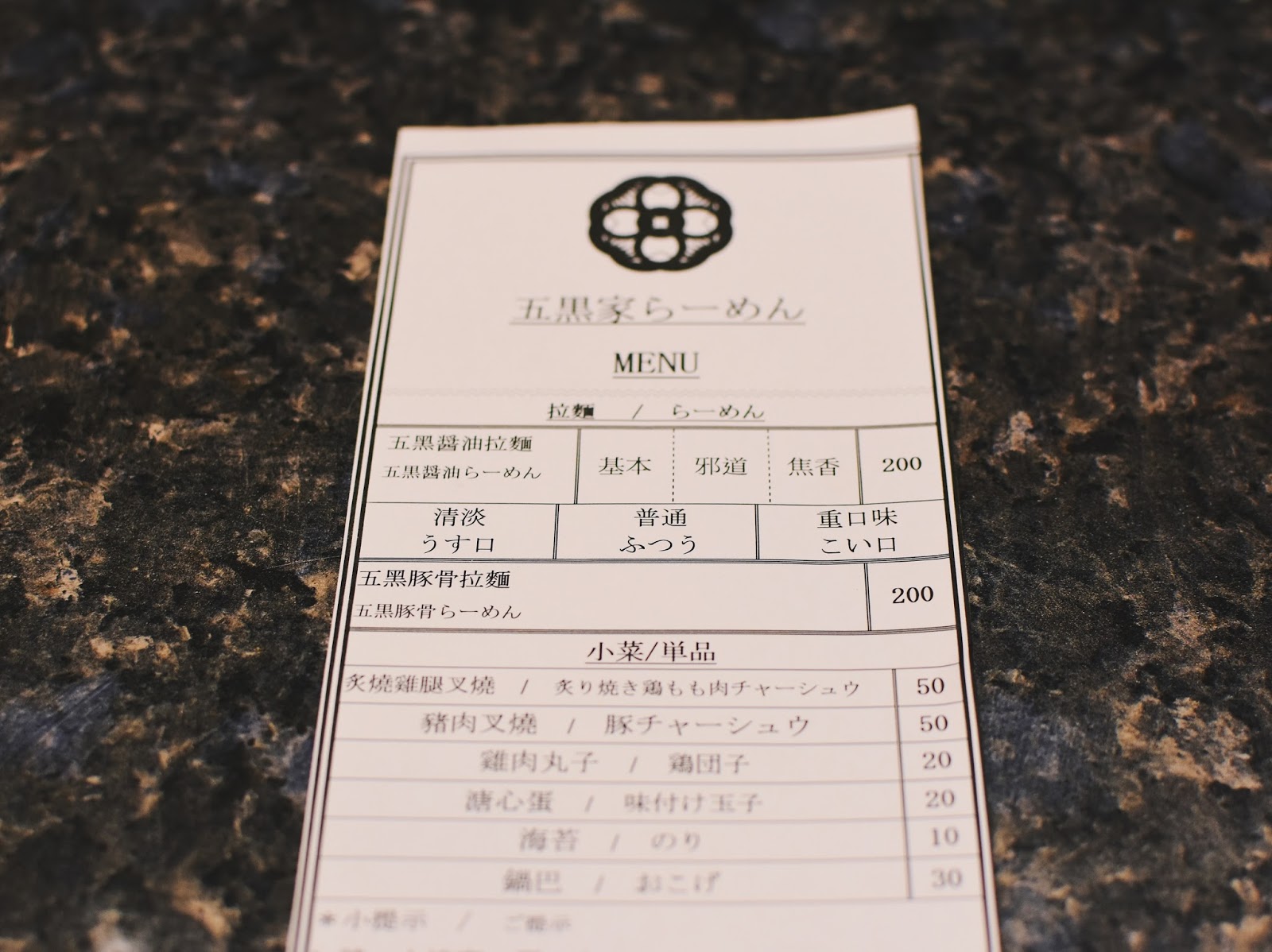 抵達時約莫已接近中餐時間的尾聲,前往hostel放完行李後,前往第一站的五黑家,網路上寫著營業時間到三點,我到的時候大約兩點,門口牌子卻已掛上『休息中』,我小心地推開拉門,裡頭的女店員卻告訴我那殘忍的事實:「啊,真抱歉,上午的份量已經售完了。」