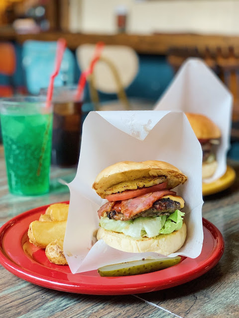 菜單有英文,點餐除非你英文真的很爛,不然別怕看不懂,我點了鳳梨培根起司漢堡,枕邊人則是雙倍漢堡肉漢堡。