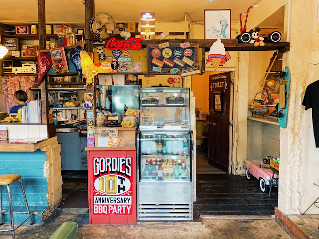 GORDIE’S離美國村很近,有專屬的停車場,我們是下午用餐,避開了人潮較多的時段,車位很空,很輕鬆的停好車,便迫不及待的走進店門口。