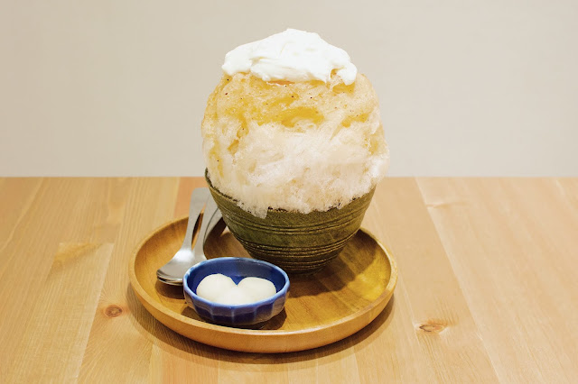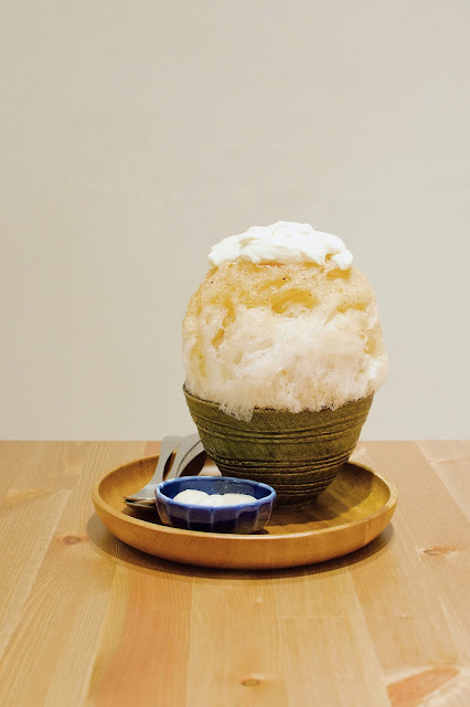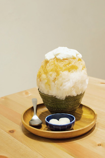 日式刨冰在視覺上總是做得如此討喜,將剉下的絲絲冰片,細心堆疊成一座可口山丘,依照口味淋上店家特製的糖漿,糖漿為自然食材製成,滋味甘甜爽口,與化學工廠所製造,讓人吃了感覺頭皮發麻的甜膩糖漿,是截然不同的風味。