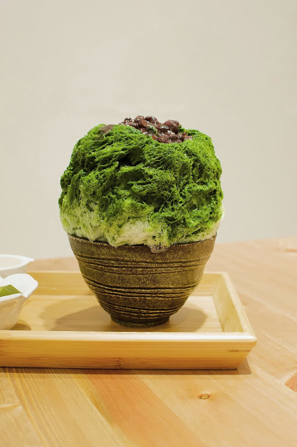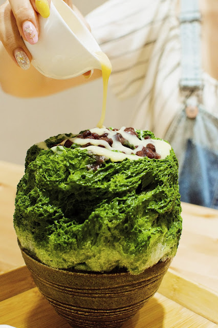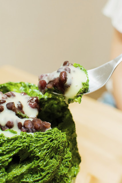 微微苦澀的抹茶冰,淋上煉奶,帶出甜味,紅豆則煮得粒粒分明,增加了食用刨冰時的口感。
