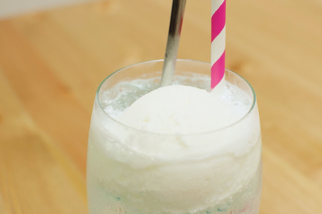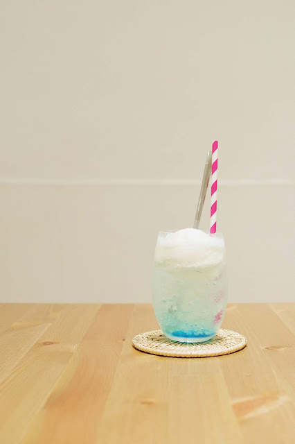 『豪放富士氣泡飲』類似冰淇淋加雪碧的概念,冰淇淋漂浮在氣泡上,看起來十分沁涼。