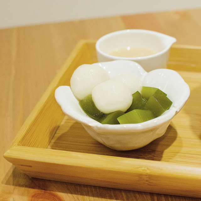 碗底的寒天珍珠,比一般的粉圓珍珠來得爽口,清脆彈牙,白玉為現煮,口感柔軟,若趁熱和刨冰一塊兒吃下,頗有類似食用燒冷冰的快感。