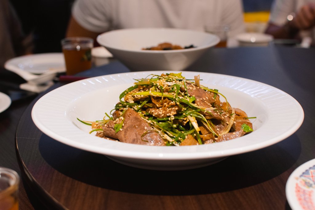 主廚說,滷味拼盤是家中有重要節慶才會出現的菜色。以蔥絲裝飾,撒上白芝麻增添香氣,牛腱、牛肚、花生滷得入味。牛腱切得薄,吃起來很爽口;牛肚略帶彈牙的口感,令人喜愛。