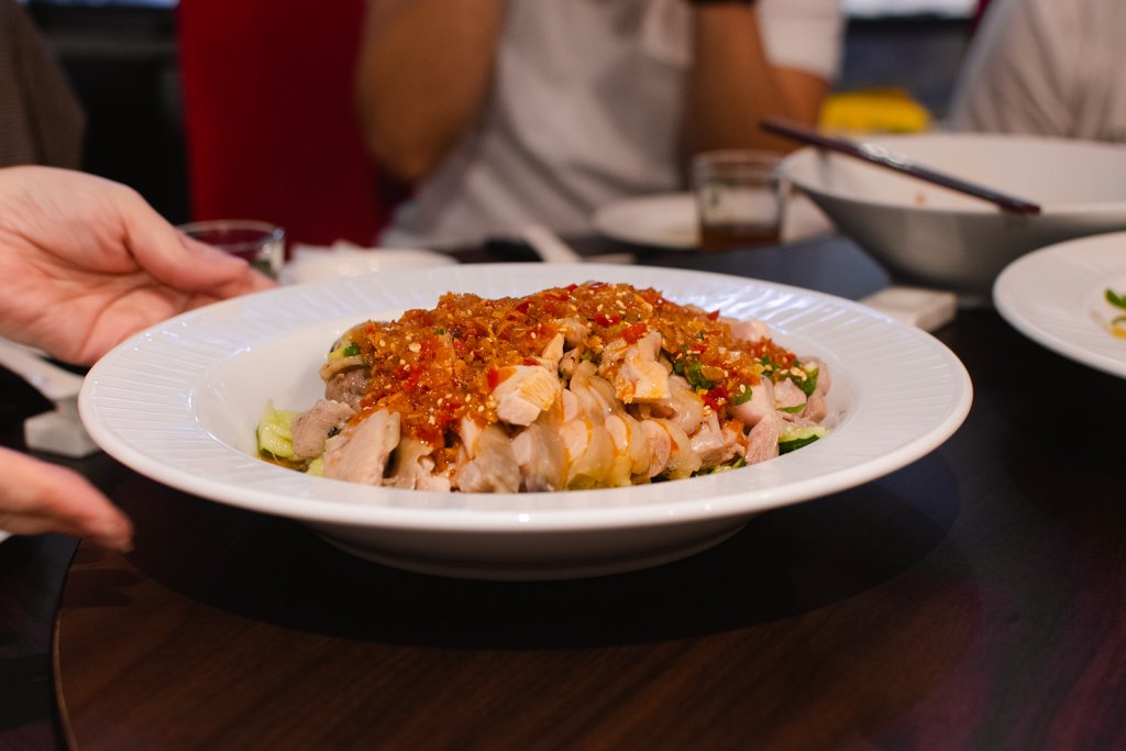 最後一道涼菜為口水雞。取自鮮嫩的的雞腿,帶著椒香麻辣,下方以小黃瓜襯底。不過個人淺見,小黃瓜要是能再冰鎮一點,吃起來會更脆爽;辣度方面也可以再加強。