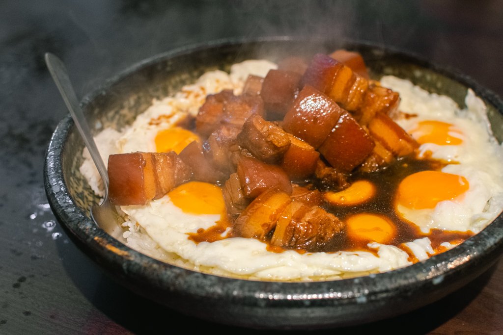 東坡肉雖然切得大塊又隨意,卻讓人吃得痛快,吃得快活,肥嫩的肉質、半熟蛋與白飯真是美妙又邪惡的搭配。