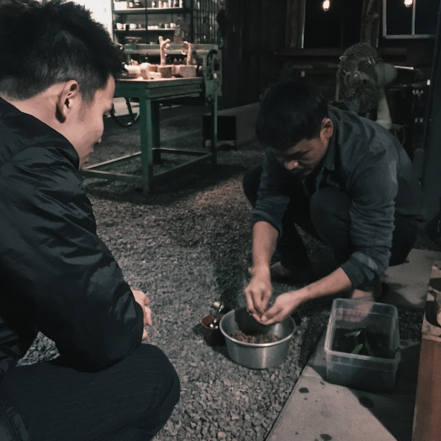 而此時店裡只剩下我們這桌客人,其餘兩桌客人早已不知不覺悄悄離開,外面天已黑,我們享受著此刻的寧靜,只剩黑暗裡發出的雨聲,滴滴答答的陪伴。