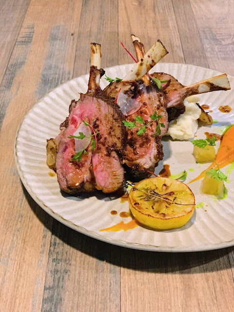 羊排表面烤至焦脆,內裡的肉呈現淡淡的粉色,口感介於稍有嚼勁與柔軟之間,咀嚼時所散發的特殊肉質風味十分迷人。