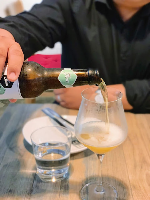 前菜點了兩款精釀啤酒,除了前述的DOPPO牡蠣啤酒,還有一款來自英國酒廠,名為『愛爾蘭巨人拉格啤酒』,明亮的柑橘風味,和牡蠣啤酒一樣,皆為非常夏日的清爽型酒款。