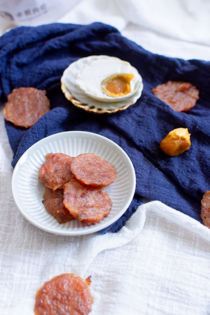 其中讓我感到最獨特的為「金沙鹹蛋豬肉乾」,是水根肉乾與彰化福華畜牧場聯手合作研發的特殊口味,使用益生菌鴨蛋,吃來無一般認知鹹鴨蛋的腥味,柔和的蛋黃香氣與肉乾彷彿天作之合。
