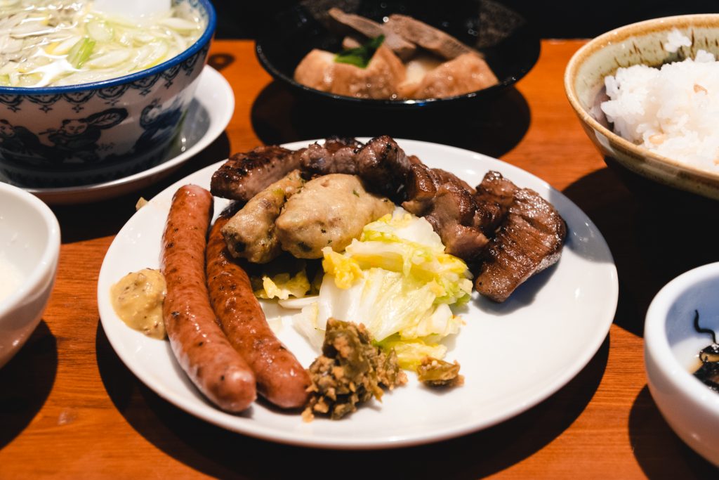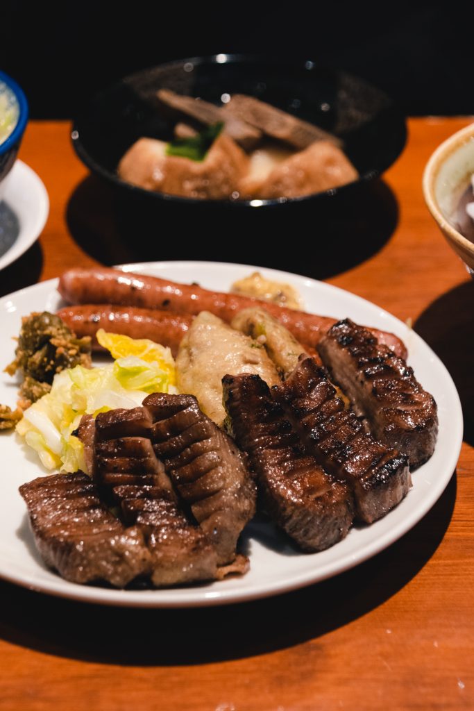 套餐除了可品嚐真中牛舌(所謂的「真中」是取自牛舌最精華之處,口感比一般使用的部位相比更為厚實軟嫩)之外,還能享用牛舌製成的肉腸、肉串以及煮物料理,飽滿的肉食感,讓人大呼過癮。