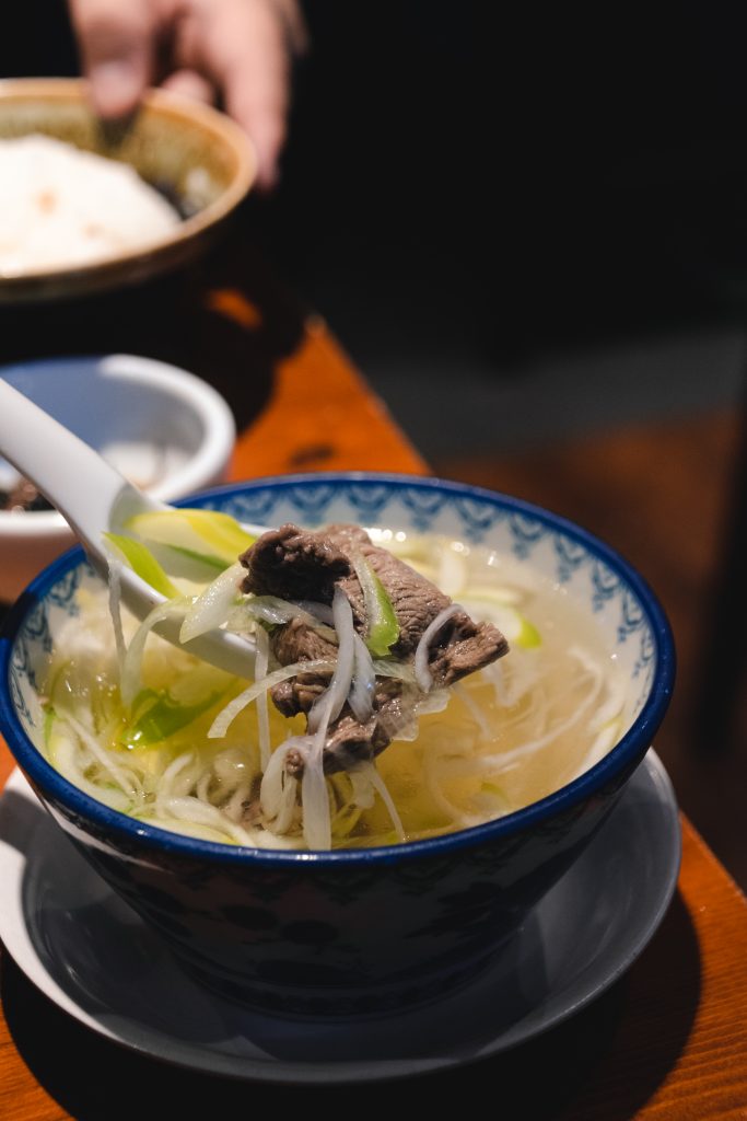 而善治郎的牛尾湯是此趟東北行裡最喜歡的一家。湯裡的牛尾燉得極為軟嫩,舀起便是滿滿的鮮甜大蔥,湯頭則有淡淡的白胡椒香氣,那微微的辣在寒冷的天氣裡,喝上一碗讓人感到很溫暖。