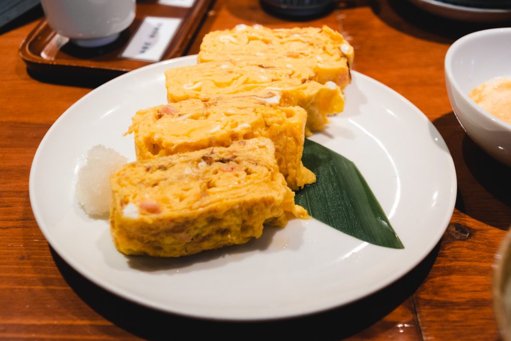 加點的玉子燒也是意外的驚喜,有別於冷藏起來的玉子燒,這裡現點現做,厚實的份量洋溢著暖烘烘的蛋香,玉子燒應是加入高湯一塊兒煎,仔細品嚐是類似天婦羅醬汁的味道,我還是第一次吃到這種口味的玉子燒。
