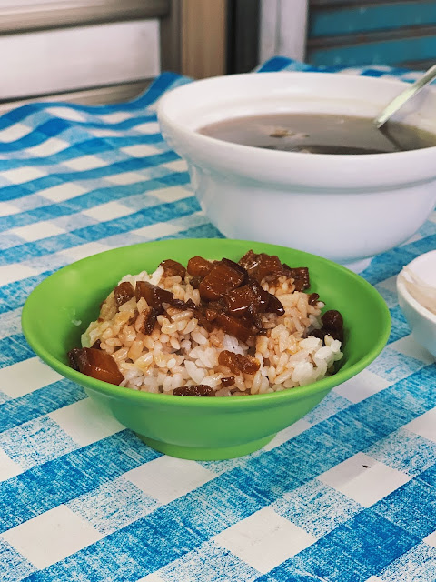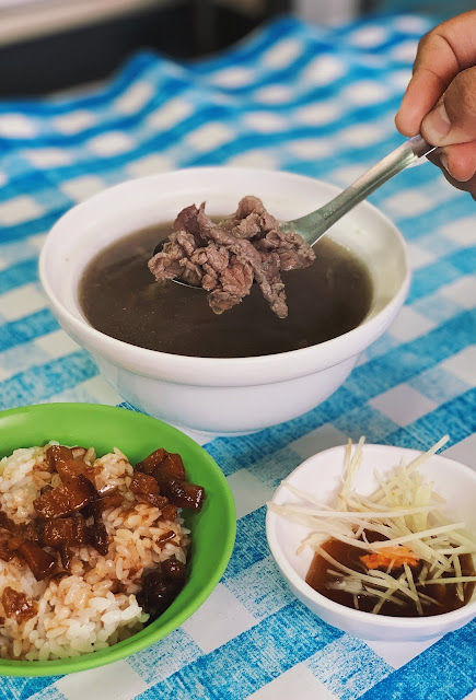 肉燥飯使用的肥肉部分較多,雖然如此,原本肥肉會有的油膩感,若和牛肉湯輪流的吃食,那牛肉清甜的滋味,竟無形中化掉了那股油膩。