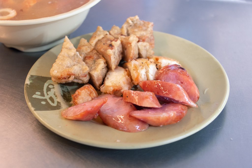 我們點了蝦捲、魚蛋、脆腸、鯊魚肉、豬心、香腸、茄子、苦瓜、蟳丸、粉腸,總共十樣。下次來應該就可以把菜單都吃過一遍。