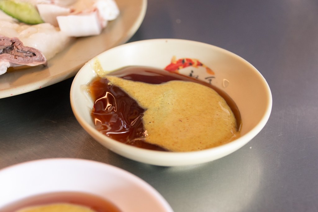 小菜會附上黃芥末和醬油膏,這是很常見的台南醬料。